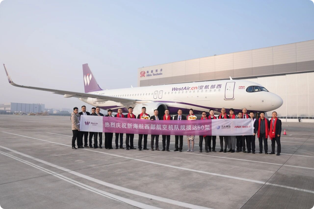 航空旅(FlightGlobal)消息,2025年12月18日,在新海航西部航空加入辽宁方大集团四周年的重要节点,一架编号为B-32PV的空客A320neo飞机平稳降落在重庆江北国际机场,接受民航最高礼仪“水门礼”迎接,西部航空第50架飞机正式入列,标志着公司迈入中型航空公司行列。