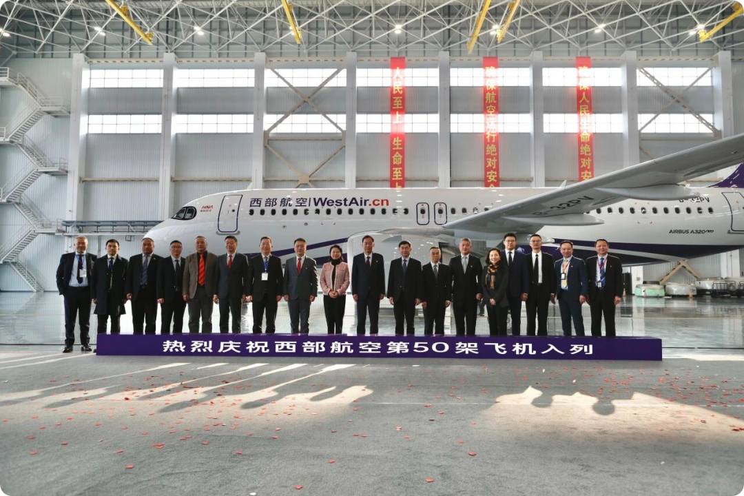 当日,重庆市交通运输委员会、重庆市人民政府口岸和物流办公室、重庆机场集团、空中客车公司、中信金融租赁有限公司等重要合作伙伴代表共同出席在机场E2机库举行的入列仪式,见证西部航空发展历程中的重要里程碑。此次机队规模突破50架,意味着西部航空已完成全空客机队的迭代升级,在综合运营能力、航线网络覆盖和战略承载价值方面实现质的飞跃。