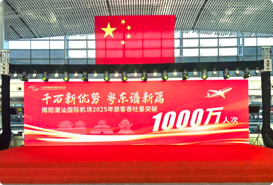 三江出海,一纸归潮。千万人次的跨越,是潮汕大地开放包容的生动注脚,更是广东高质量发展的铿锵足音。站在新的历史起点,广东机场集团将深入学习贯彻习近平总书记视察广东和出席第十五届全国运动会开幕式重要讲话重要指示精神以及关于交通强国的重要论述,全面贯彻落实党的二十大和二十届二中、三中、四中全会精神,落实省委“1310”具体部署,贯彻全省“3+4+8”运输机场建设部署要求,进一步发挥枢纽优势服务高水平对外开放和区域协调发展,统筹高质量发展和高水平安全,提升机场建设和运营管理水平,充分发挥枢纽动力源作用,构建更具国际竞争力的现代化民航产业体系,助推建设世界一流企业和世界一流机场,为广东在推进中国式现代化建设中走在前列贡献机场力量。来源:揭阳潮汕机场公司
