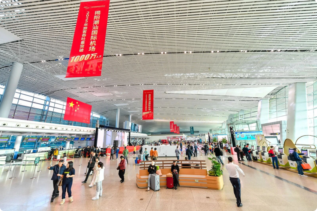 从2023年的718万人次,到2024年的866万人次,再到2025年突破1000万人次,作为全省第四个千万级机场,揭阳潮汕机场的跨越式增长,离不开安全筑基、航线拓疆、服务焕新与基建提质的久久为功。