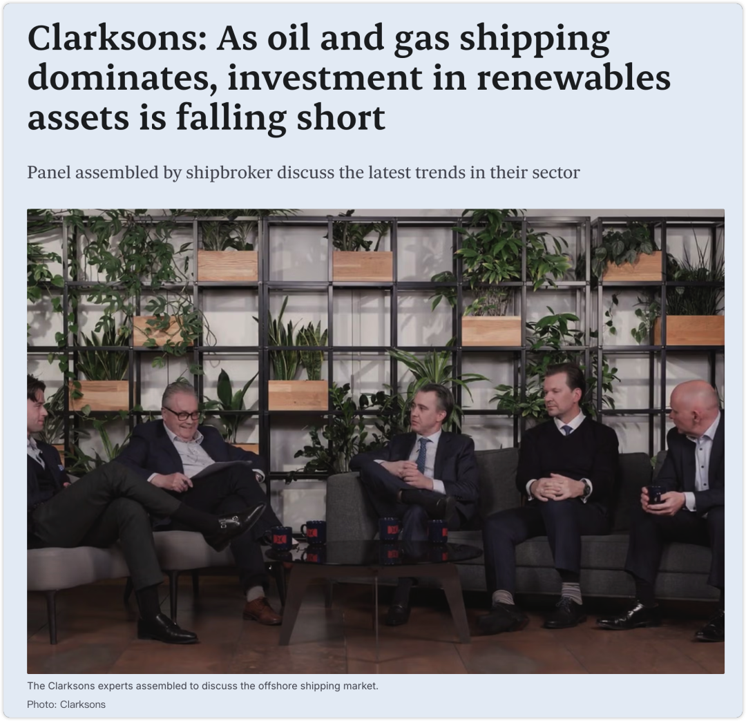 在全球能源需求持续攀升的背景下,世界的供能方式正变得愈发复杂。船舶经纪巨头克拉克森(Clarksons)近日在其官网播出的“炉边谈话”中,邀请公司多部门专家解读海上能源与海工航运的最新趋势。这家伦敦上市公司的讨论小组从海上油气到可再生能源,聚焦当下的能源安全格局及其未来走向。