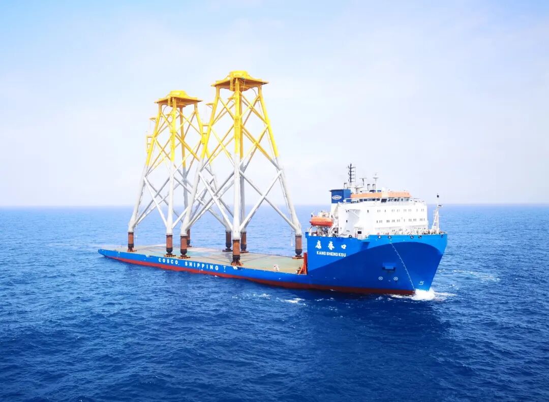 中海福陆重工有限公司位于珠海高栏港。在Inch Cape海上风电项目中,由该司承建的18套导管架基础、配套54根钢桩及24套转接件,均由中远海运特运半潜船与重吊船安全高效完成运输。