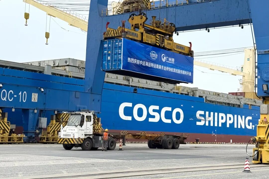 2025年5月,62000吨多用途纸浆船“中远海运长青”轮首发,承运新能源车、工程设备、集装箱等货物,30天直达巴西维多利亚港——特运南沙-南美东“金砖快航”周班,助力湾区企业开拓金砖国家市场,激活中拉贸易新动能。