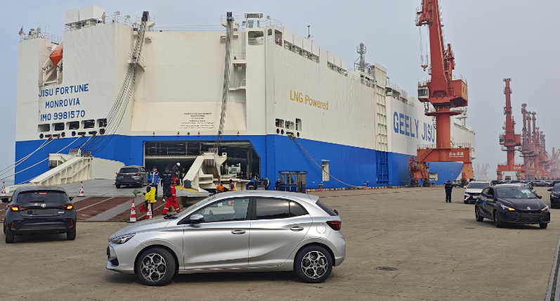 3月24日,连云港港迎来吉利集团自有LNG动力滚装船“吉速财富”号(JISUFORTUNE)首次靠泊,承载着4449台上汽名爵国产轿车与258台工程车辆,共计4707件、76000