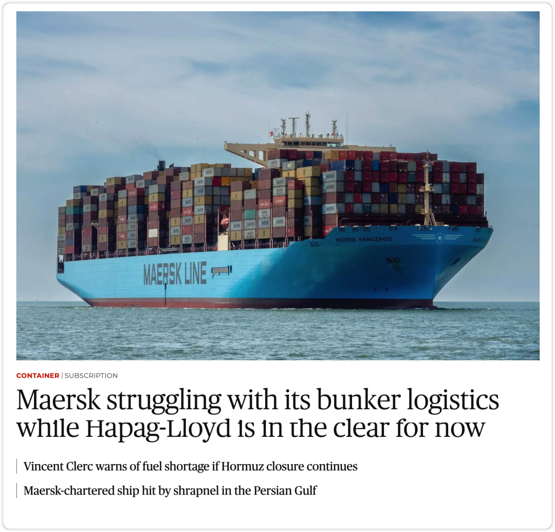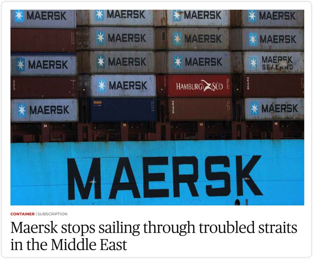 1、马士基因中东冲突升级暂停霍尔木兹与曼德海峡航行