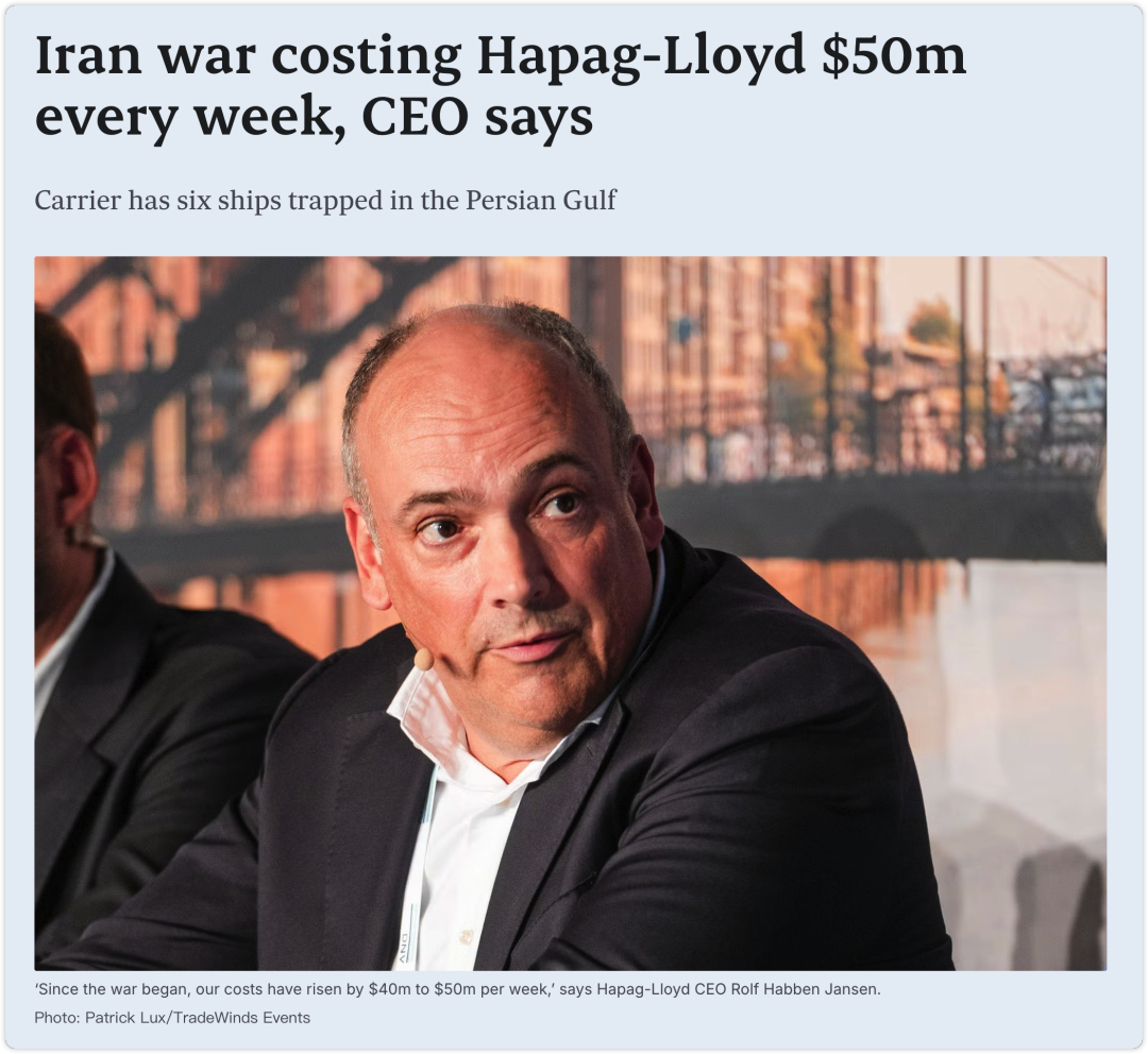 1、赫伯罗特每周因伊朗战争损失5000万美元 CEO直言燃油与安全双重挤压