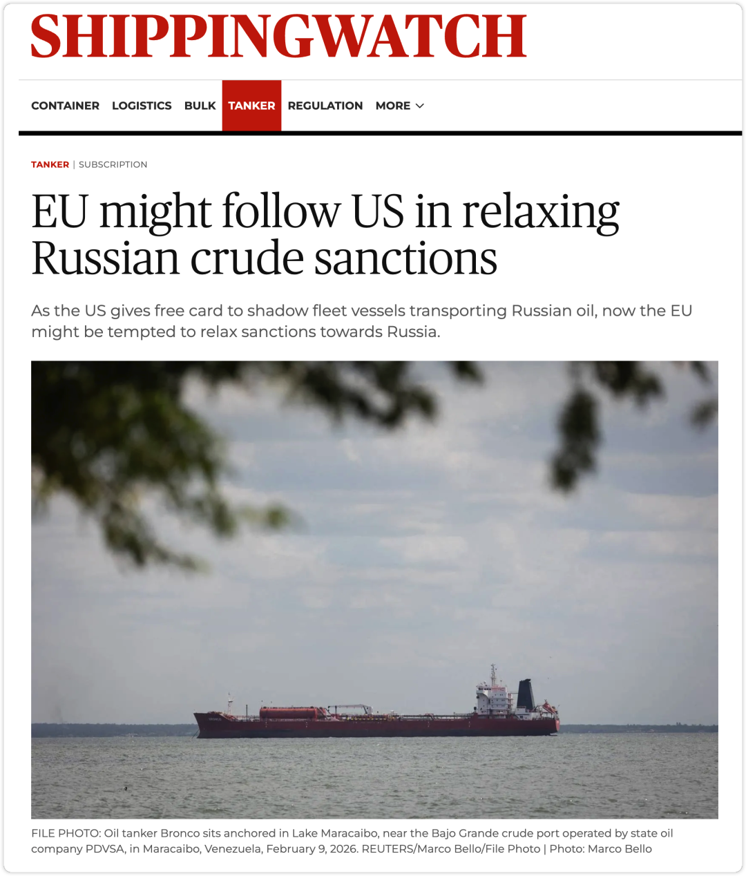 近日,在美国对“影子船队”运输俄罗斯石油的船只放行后,欧盟也可能受到诱惑,逐步放松对俄罗斯的能源制裁。