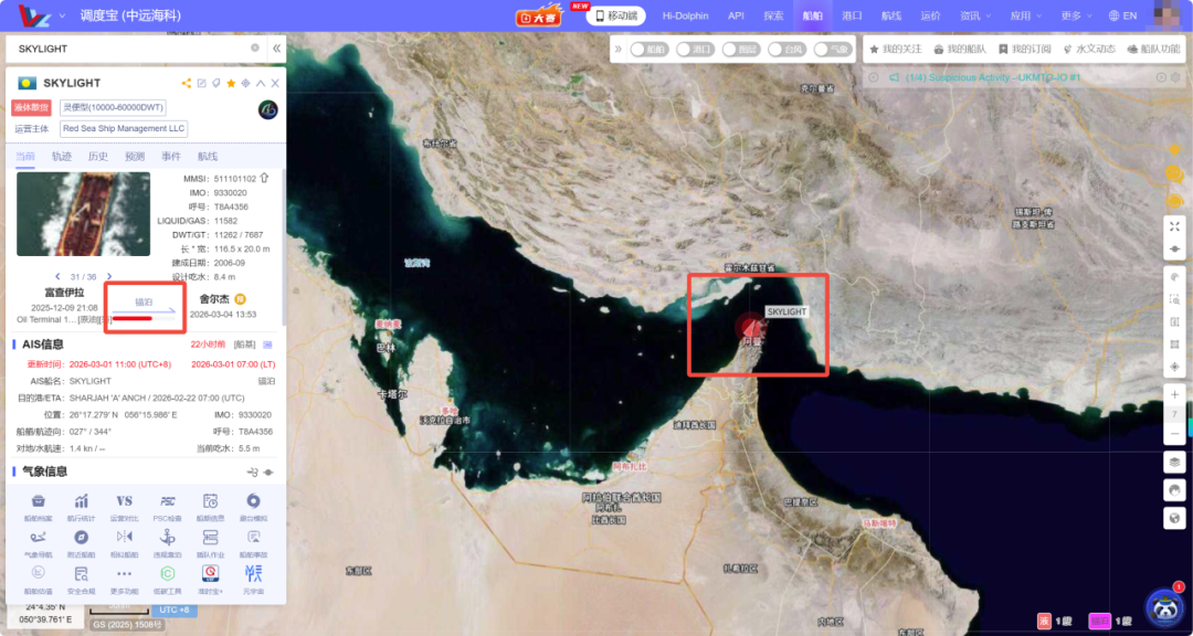船上共有20名船员,包括15名印度籍人员和5名伊朗人员,目前已全部撤离。船视宝-船舶显示,“SKYLIGHT’号目前锚泊在哈萨卜港锚地外水域。