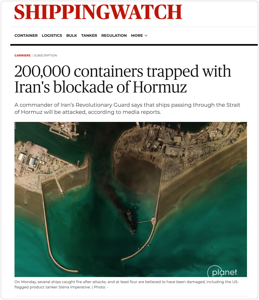 与上一轮红海危机不同,霍尔木兹是能源与集装箱的共同痛点。全球约五分之一的原油消费要从这里通过,沙特、伊朗、阿联酋、科威特、伊拉克的原油,卡塔尔几乎全部的LNG,都要从这个瓶口挤出去。一天之内,多艘船在袭击后起火,美旗成品油轮Stena Imperative受损。更糟的是,船东和承运人的风险垫被保险业迅速抽走:包括Gard和Skuld在内的多家保赔、战险机构宣布自3月5日起不再承保伊朗水域与阿拉伯湾的战时风险。这在实操上意味着什么?意味着即便你有胆、有船、有货,也没有保单就无法合法开航。资本市场的风险定价往往比军方通告更快、更冷酷。