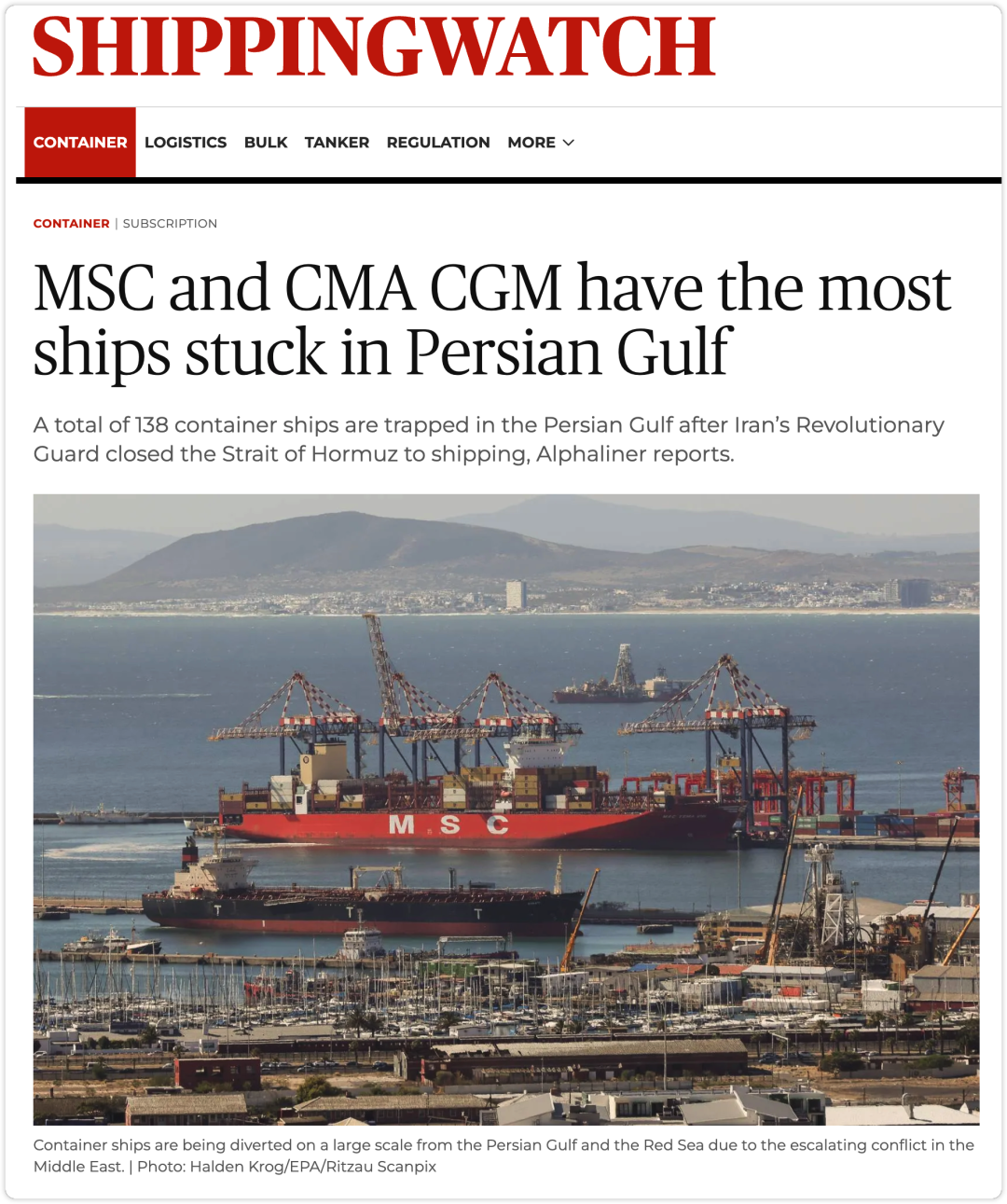 分析公司指出,意大利-瑞士合资的MSC航运公司拥有15艘船只,是伊朗革命卫队封锁霍尔木兹海峡水域中船只最多的航运公司。