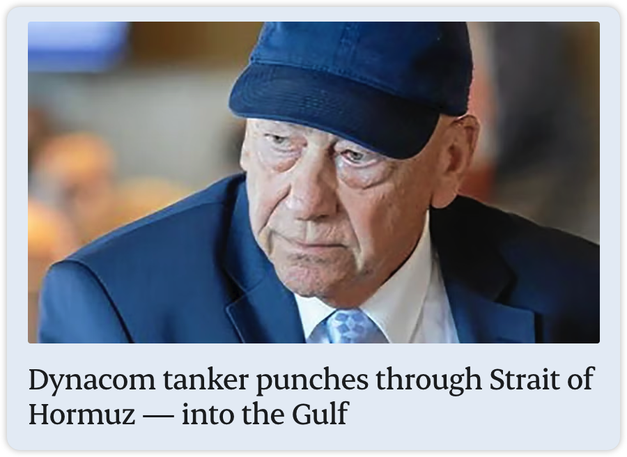 前言:150艘油轮瑟瑟发抖不敢动,Dynacom却连闯5次!这是勇气还是疯狂?伊朗说