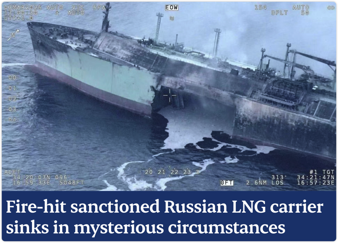 行业观察者和LNG技术专家指出多处疑点:船舶跟踪数据显示2月17日在摩尔曼斯克附近从俄罗斯浮式储罐Saam FSU装载货物,疑似满载;但损伤照片显示破坏程度不像满载LNG爆炸应有的灾难性规模,推测实际LNG载量极少。船舶仍有浮力却突然沉没也令人费解。此外,该船受制裁,许多西方救助公司无法参与,俄罗斯海军或盟友才可能处理;该船去年在北方海路还曾与冰碰撞受损。
